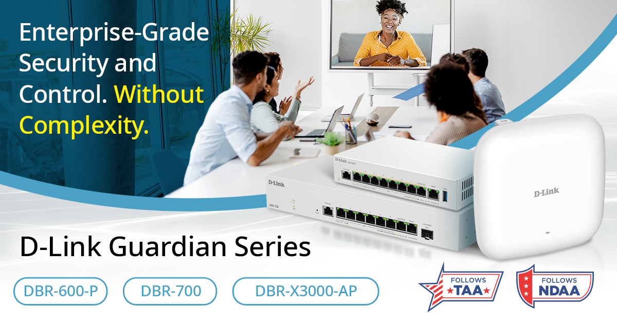 IRVINE, CA, UNITED STATES, November 19, 2025 /EINPresswire.com/ -- D-Link Systems, Inc. - D-Link United States and D-Link Canada today announced the D-Link Guardian Series (DBR-Series), a line of Multi-Gig Business Routers and Smart Access Points designed to help small and medium-sized businesses get enterprise-level networking without the added cost or complexity. D-Link Guardian business routers and smart access points provide more secure, high-speed connectivity with centralized Wi-Fi access point management.
