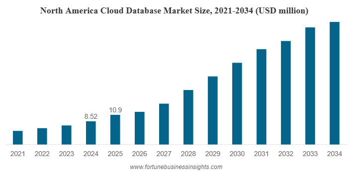 The cloud database market is experiencing strong growth, supported by accelerating digital transformation across enterprises. Organizations are increasingly migrating from on-premises database infrastructure to cloud-based platforms to reduce capital expenditure, improve scalability, and enhance operational agility. As a result, the market is projected to register sustained double-digit growth over the forecast period.